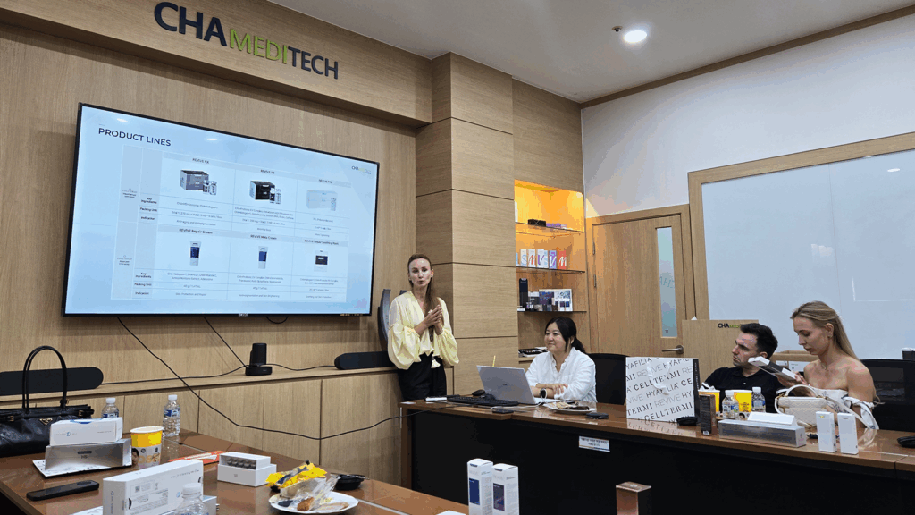 이어 열린 미팅에서는 제품의 현지 반응과 향후 전략을 논의했다. 스위스메디카 측은 “폴란드와 우크라이나에서 셀터미 리바이브 NX는 피부 재생과 색소 침착 개선 효과로 높은 신뢰를 얻고 있다”며 긍정적으로 평가했다. 차메디텍은 이에 맞춰 신제품 헤어부스터 셀터미 리바이브 HS를 중심으로 한 엑소좀 라인업 확장과 유럽 신규 시장 진출 가능성을 논의했다.