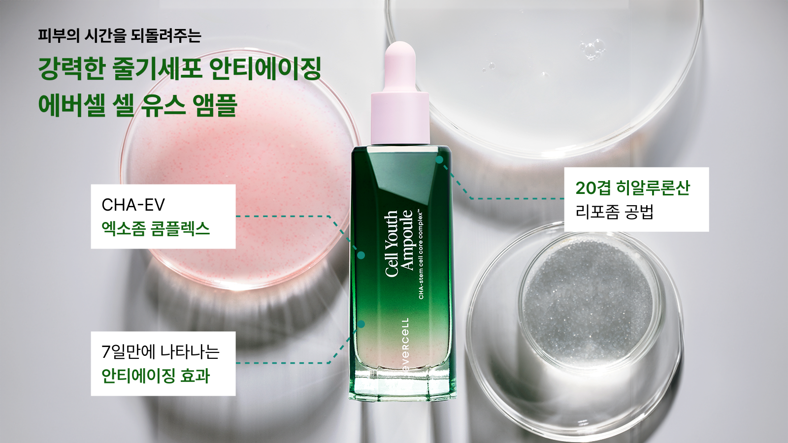 에버셀은 이런 흐름을 오래 전부터 고민해왔다. 차바이오가 40년간 연구한 세포 기술력을 바탕으로 줄기세포배양액, 엑소좀, 니도겐 등 핵심 성분을 개발하고, 유효 성분의 전달 효율을 높이기 위한 연구를 지속해 왔다. 그 성과를 한 병에 담아낸 제품이 에버셀 셀 유스 앰플이며, 최근에는 새로운 성분 조합과 전달 방식에 집중한 셀 유스 플럼핑 미스트 앰플을 선보였다.