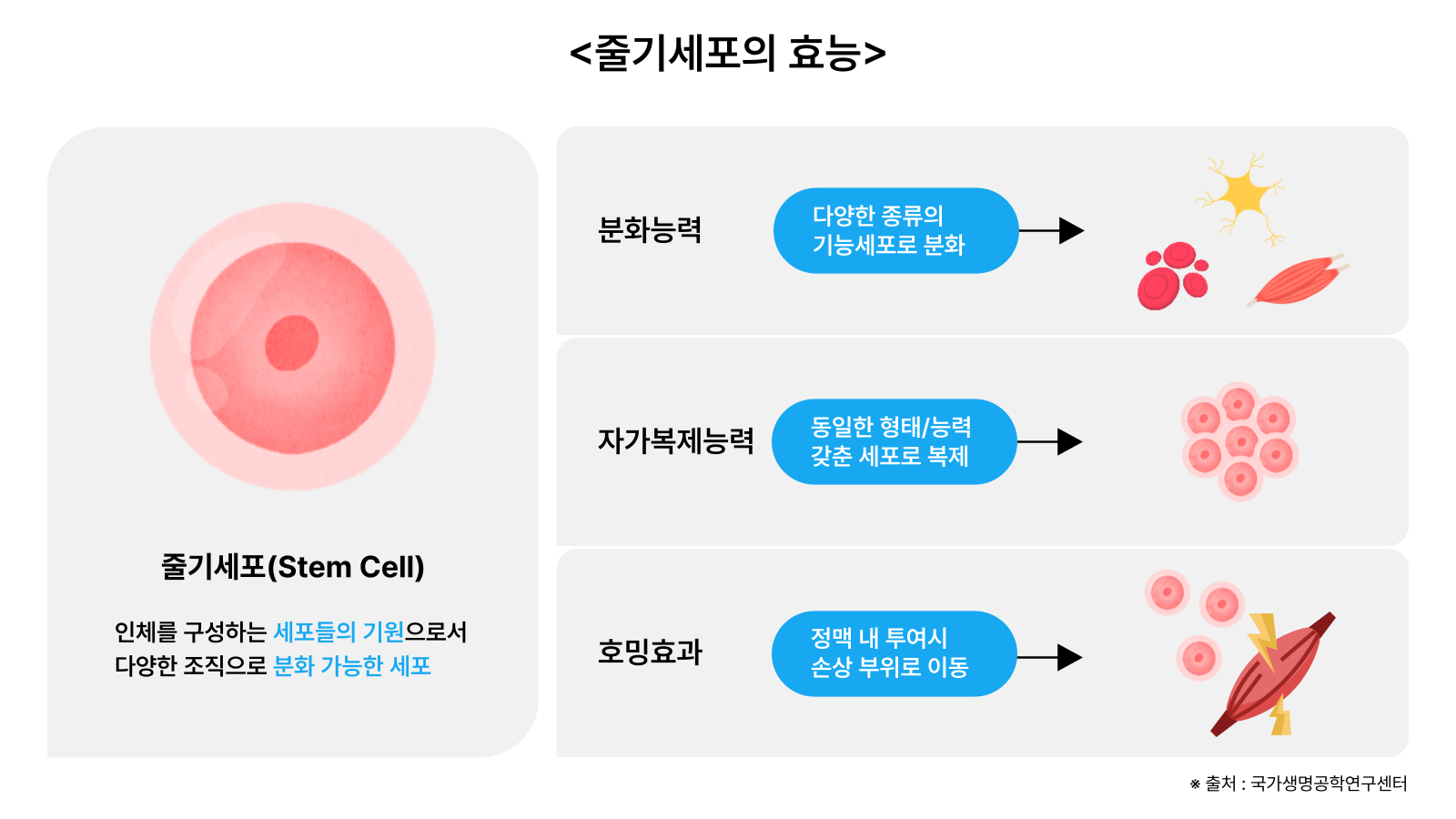 줄기세포치료제는 자기재생능과 분화능이라는 특성과 항섬유화, 항염증 효과를 활용해 기존 치료법으로 해결되지 않는 많은 치료 영역에 활용 될 수 있다.