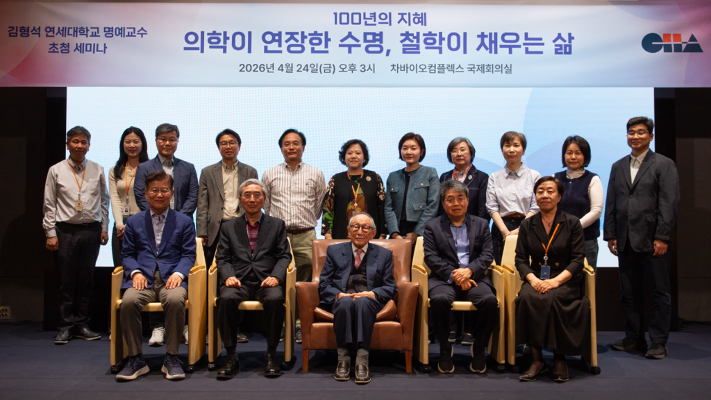 차바이오그룹은 4월 24일 경기도 성남시 차바이오컴플렉스 국제회의실에서 연세대학교 철학과 김형석 명예교수를 초청해 ‘의학이 연장한 수명, 철학이 채우는 삶’을 주제로 임직원 특별강연회를 개최했다.