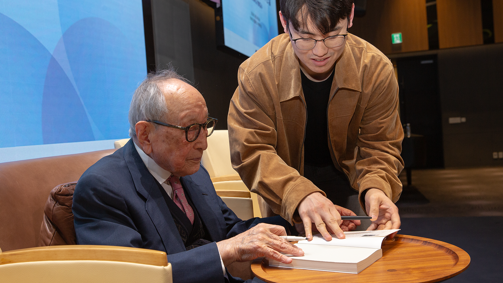 장수 시대를 살아가는 구성원들에게 건네는 조언도 이어졌다. 김 교수는 자신의 100세 인생을 돌아보며 65세부터 80세까지를 인생의 황금기로 꼽았다. 그는 “정년퇴임 전까지는 대학교라는 강 속에 살았는데, 퇴임 후 사회라는 큰 바다를 만났다. 그때부터 책도 더 많이 쓰고, 강연과 사회공부도 활발히 하며 진정한 나를 만날 수 있었다”고 밝혔다.