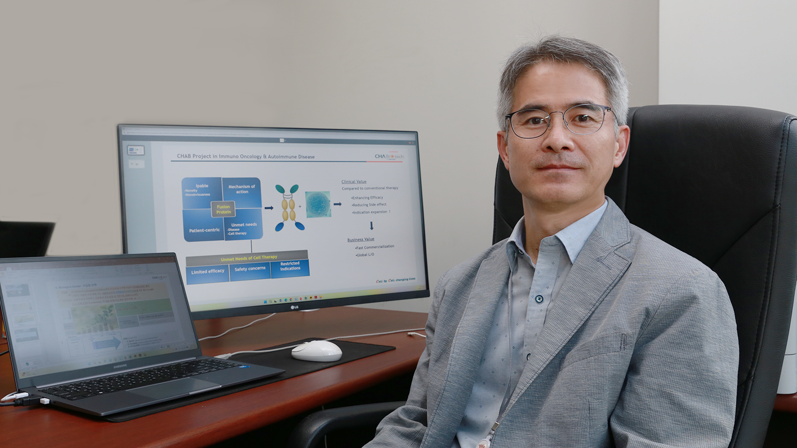 2024년 차바이오텍에 합류한 배 전무는 “융합단백질은 두 개 이상의 단백질을 유전자 재조합 방식으로 결합해 새로운 기능을 구현하는 치료제”라며 “세포치료제와 병용투여 시 약효 강화와 부작용 보완이 가능하다는 점에서 잠재력이 크고, 차바이오텍이 보유한 다양한 세포치료제 플랫폼과 단백질 연구 경험을 결합하면 세계 시장에서도 경쟁력 있는 신약 후보를 만들 수 있다”고 자신감을 내비쳤다.