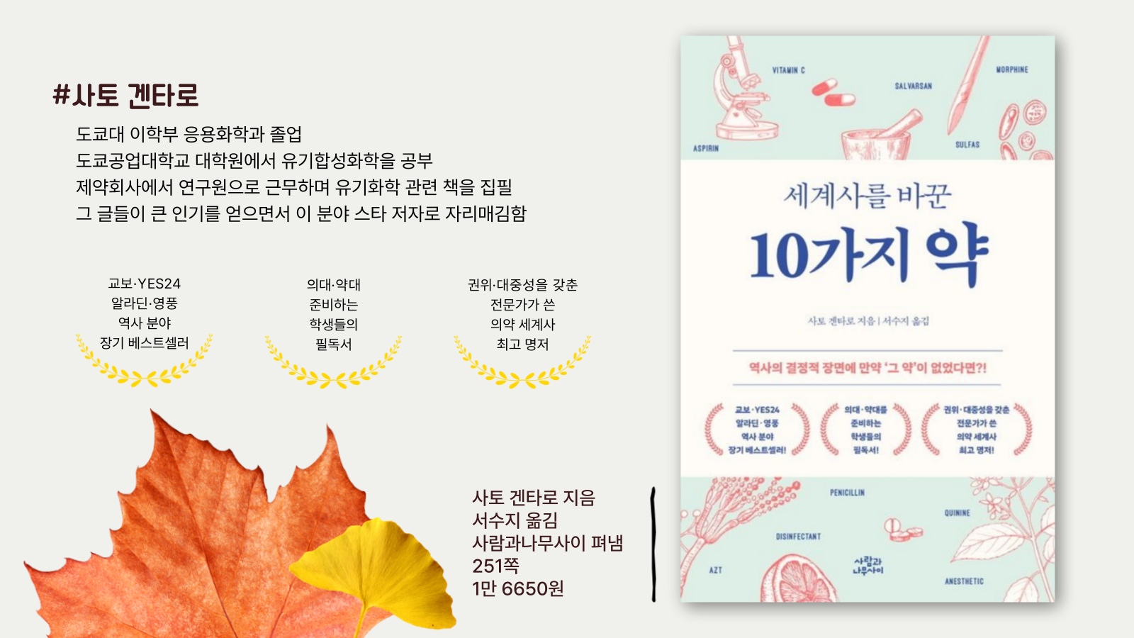 『세계사를 바꾼 10가지 약』은 과학적 사실을 역사적 상상력과 엮어낸다. 인류가 어떻게 병을 극복하며 문명을 발전시켜왔는지를 보여주고, 약이 써내려간 인류의 생존 서사를 되새기게 한다.